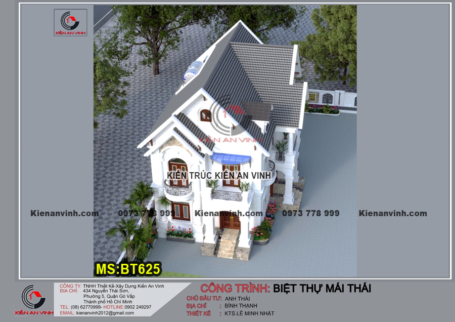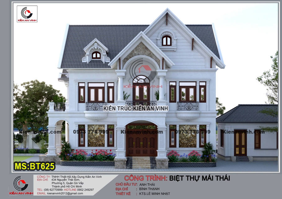 BT625 một kiến trúc được thiết kế theo phong cách tân cổ điển. Biệt thự 2 tầng này với tiêu chí phục vụ, cải thiện không gian sống cho chủ nhà. Đồng thời cũng giúp tối ưu và tiết kiệm hơn trong việc đầu tư, từ thiết kế đến khâu thi công xây dựng. Chính vì thế mẫu thiết kế biệt thự 2 tầng mái thái này ngày càng được nhân rộng.