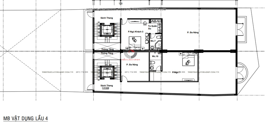 Mặt bằng công năng bên trong biệt thự 4 tầng song lập