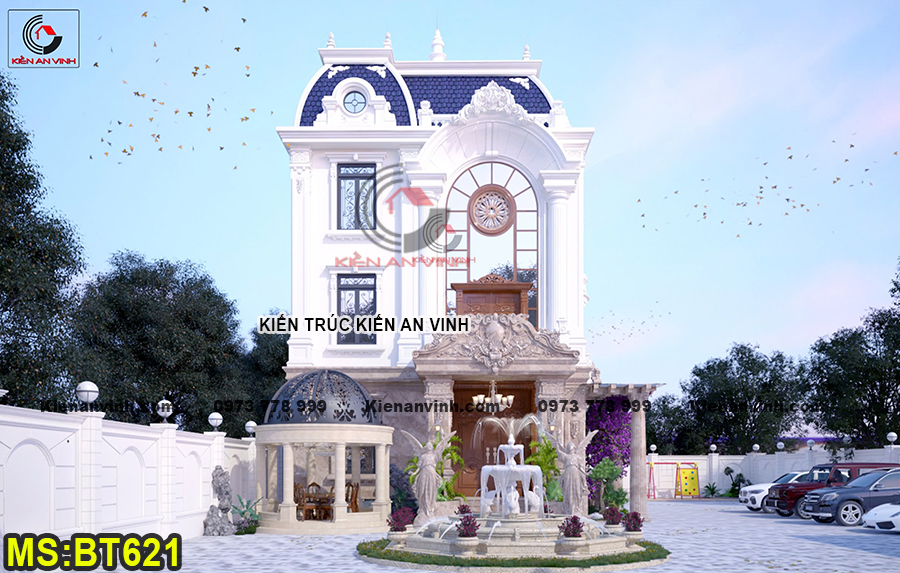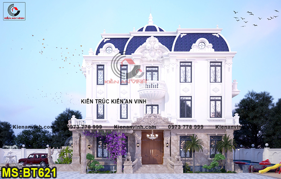 Sự đan xen kết hợp giữa 2 yếu tố hiện đại và cổ điển, luôn tạo một nét đẹp thời thượng cho kiến trúc. Chính nhờ vậy mà các công trình bán cổ điển ngày càng ứng dụng phổ biến hơn. BT621 – là bản vẽ thiết kế mẫu nhà biệt thự 3 tầng tân cổ điển có hồ bơi, có sân vườn và nhiều tiện nghi khác. Để chủ đầu tư nắm rõ về kiến trúc, có thể tham khảo hình ảnh chi tiết bến dưới về mẫu biệt thự này nhé.