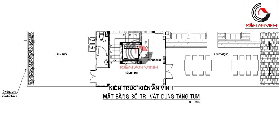 Tầng 4 :Phòng thờ, sân thượng, sân phơi.