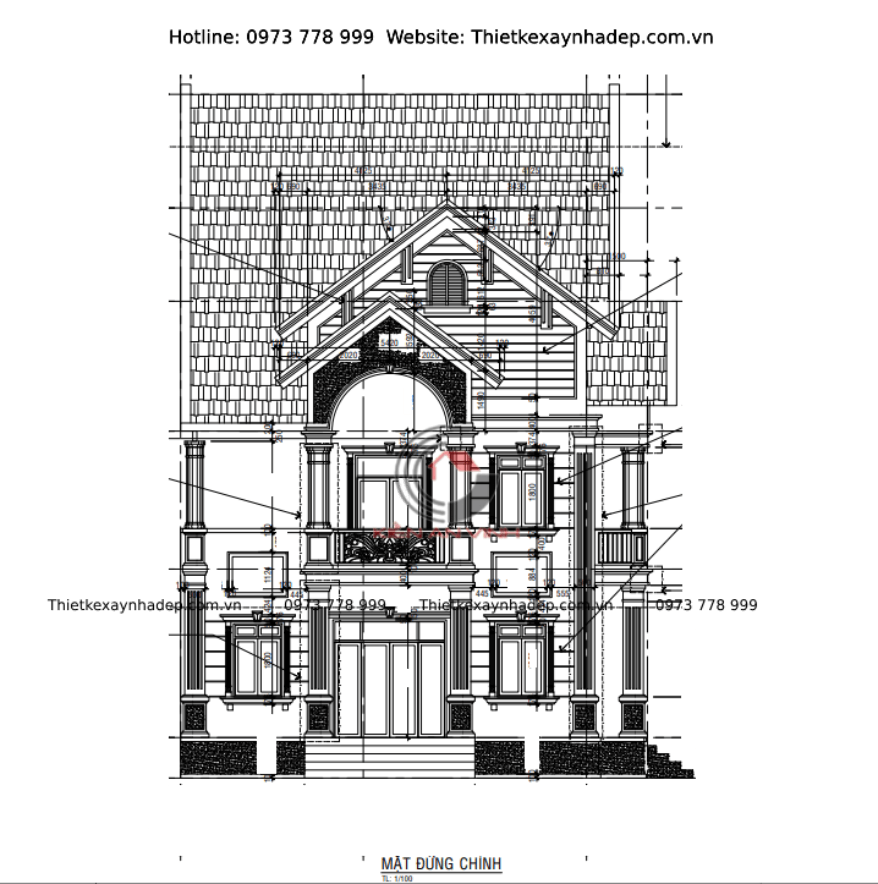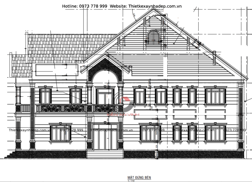 Bản vẽ thiết kế biệt thự 2 tầng mái thái với diện tích 10x23m