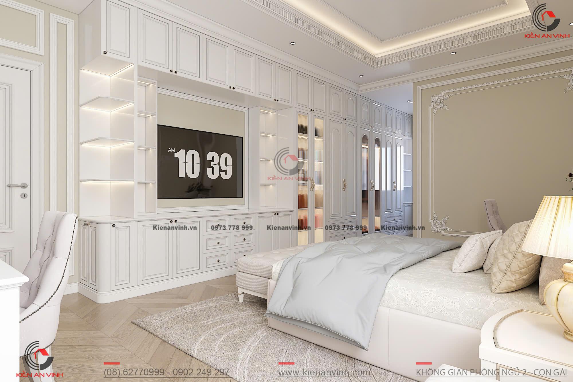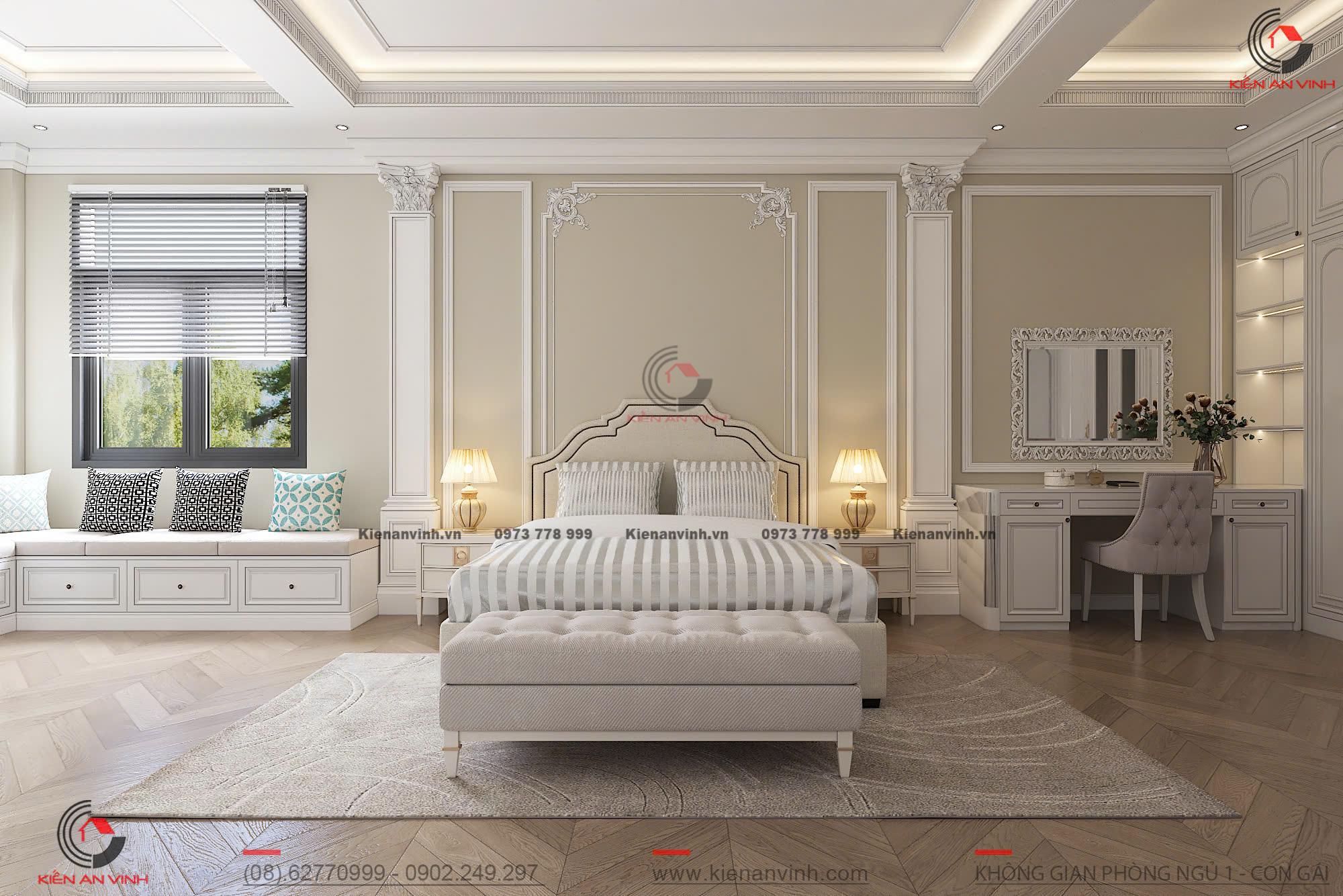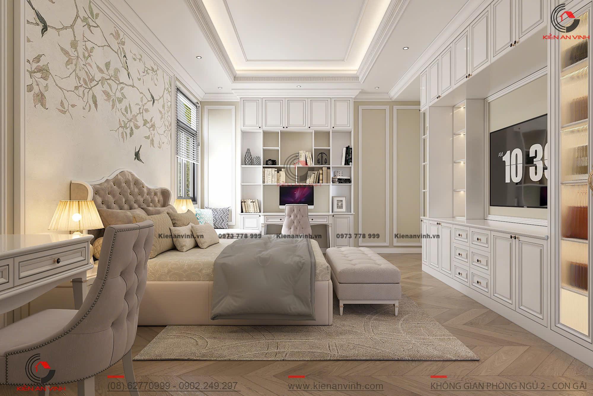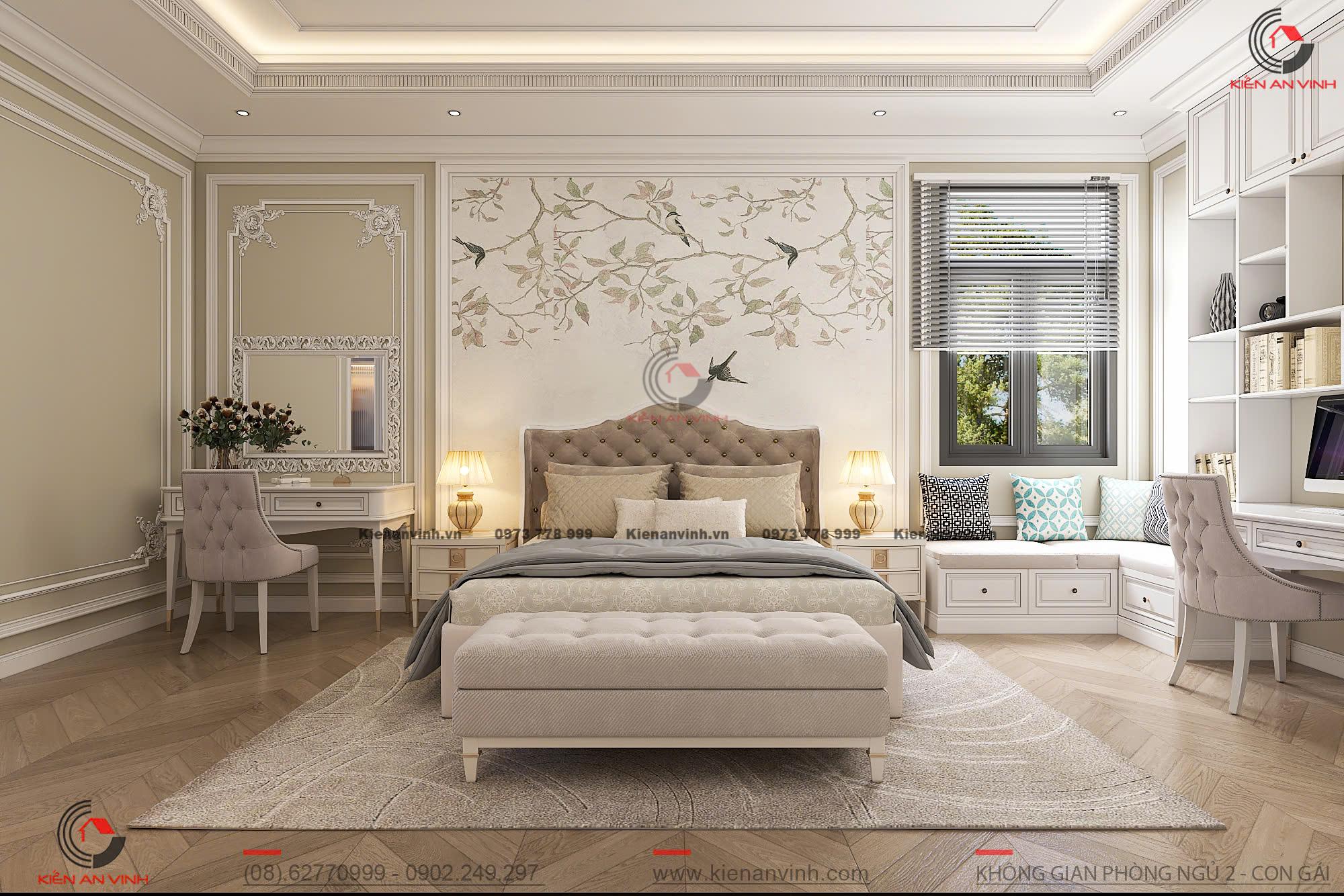 Phòng ngủ trong mẫu biệt thự tân cổ điển 5 tầng mang phong cách nhẹ nhàng, thư giãn: