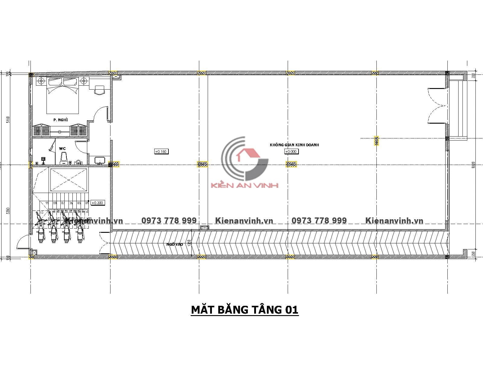 - Tầng 1: Kinh doanh, showroom, cửa hàng
