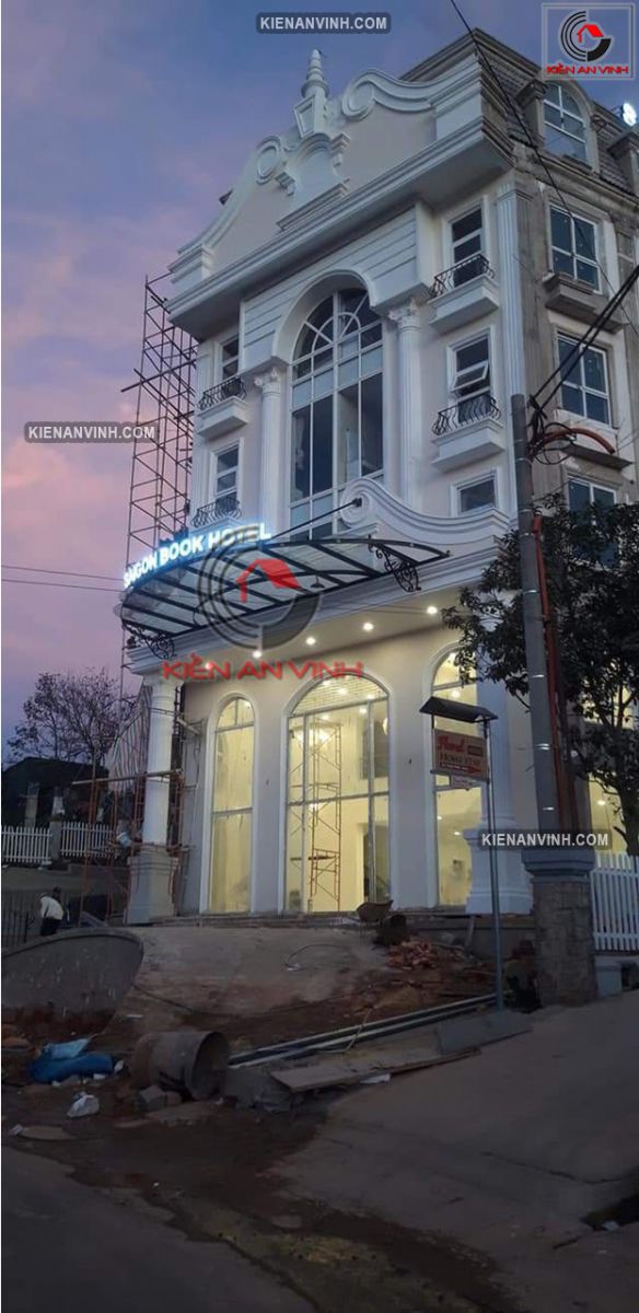 Kiến An Vinh – địa chỉ thi công khách sạn tân cổ điển chuyên nghiệp tại khu vực Gò Vấp, quận 12 nói riêng và miền Nam nói chung. Qua quan sát hình ảnh thi công khách sạn này. Cho thấy được sự đầu tư về hình khối mà chúng tôi mang lại. Nét đẹp khỏe khoắn còn thể hiện nhờ các hệ cột chống đỡ ở khu sảnh ngay mặt tiền chính của khách sạn. Khu vực lang cang ở mỗi tầng được đồng nhất về thiết kế và cả vật liệu thiết kế. Với những thanh sắt mạ đen uốn lượn đơn giản, mang lại sự cân đối giữa 2 mặt bên của khách sạn.