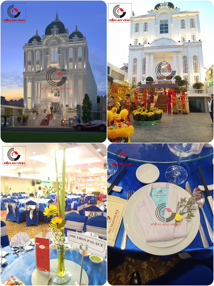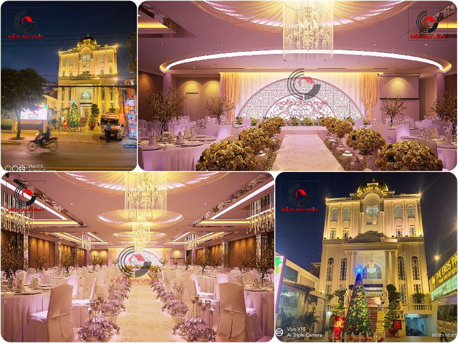 Trong lĩnh vực kinh doanh trung tâm tiệc cưới và hội nghị cao cấp, kiến trúc và không gian nội thất đóng vai trò quyết định đến khả năng thu hút khách hàng. Dự án thi công nhà hàng The Eros Palace tại đường Lê Văn Khương là một trong những công trình tiêu biểu do Kiến An Vinh thực hiện trọn gói từ thiết kế đến thi công hoàn thiện.