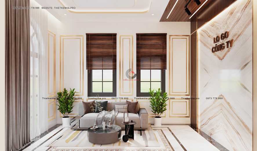 Phối cảnh thiết kế biệt thự 4 tầng tân cổ điển kết hợp văn phòng