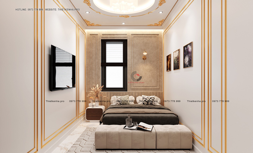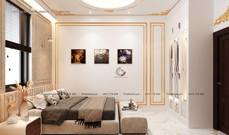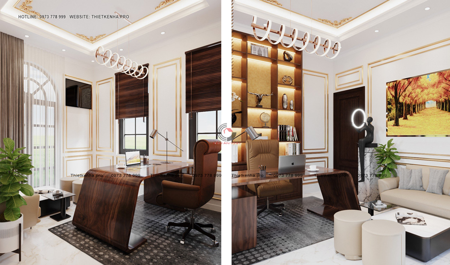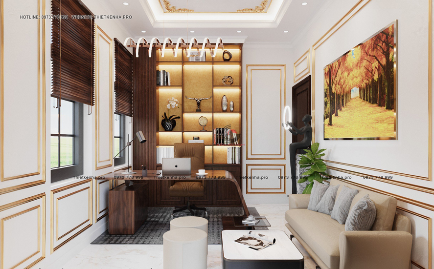 Thiết kế biệt thự 4 tầng tân cổ điển 3 phòng ngủ kết hợp văn phòng