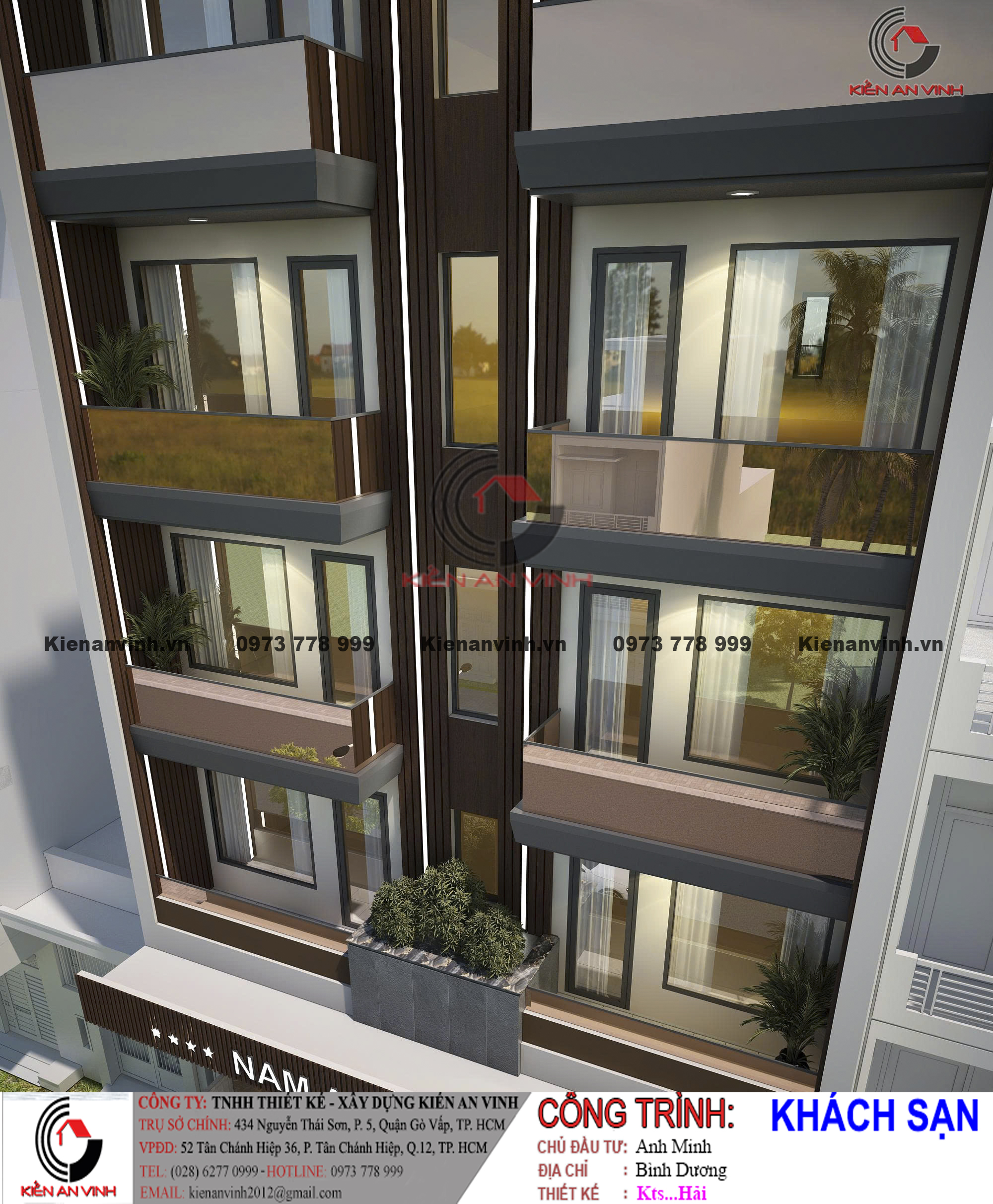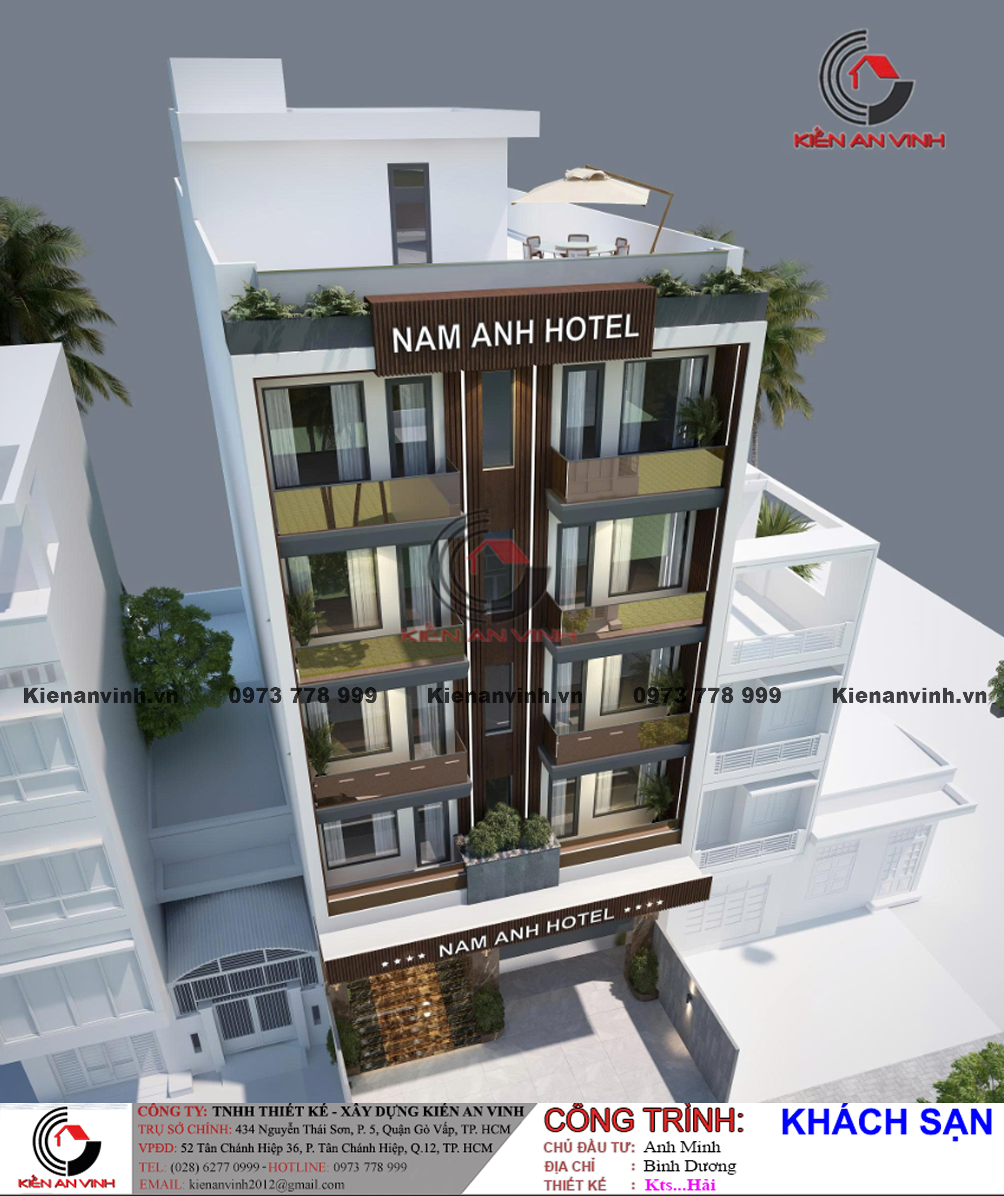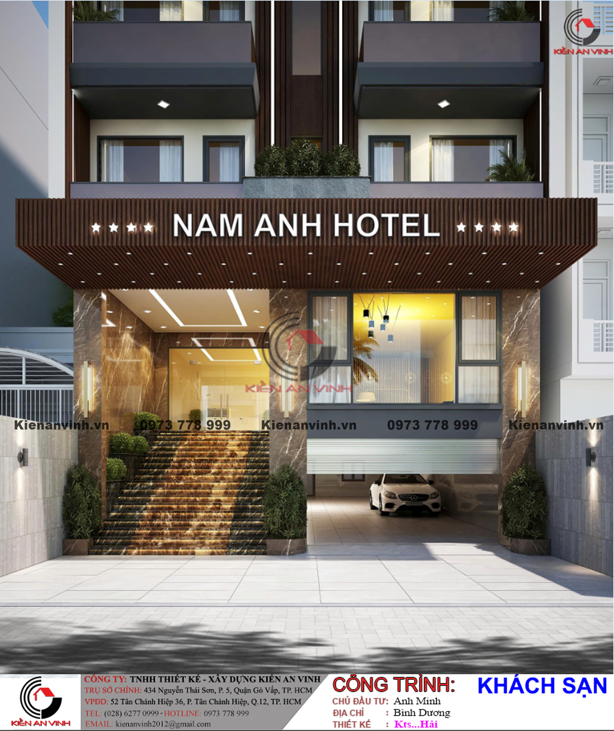 Dự án khách sạn Nam Anh Hotel tại Bình Dương, được Kiến An Vinh thiết kế và thi công trọn gói, là minh chứng rõ nét cho phong cách kiến trúc hiện đại, tinh tế và tiện nghi – phù hợp với xu hướng nghỉ dưỡng sang trọng hiện nay.
