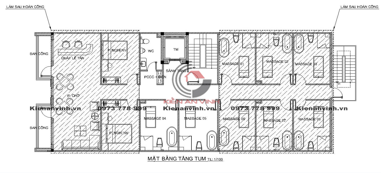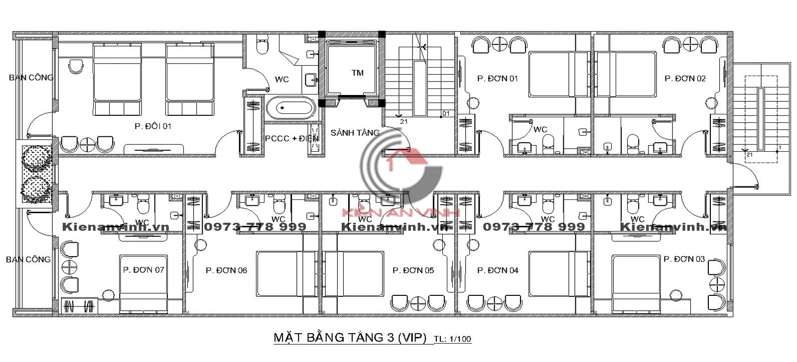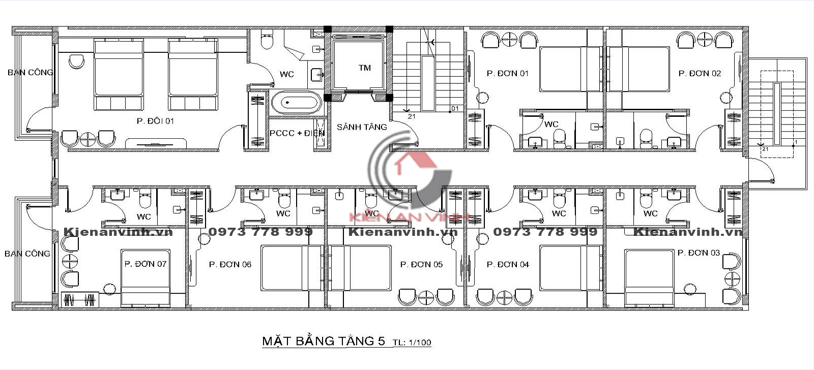 Bố cục chi tiết của thiết kế khách sạn 5 tầng