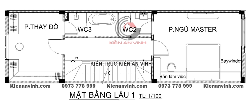 Tầng 2 : Phòng ngủ, phòng thay đồ, vệ sinh.
