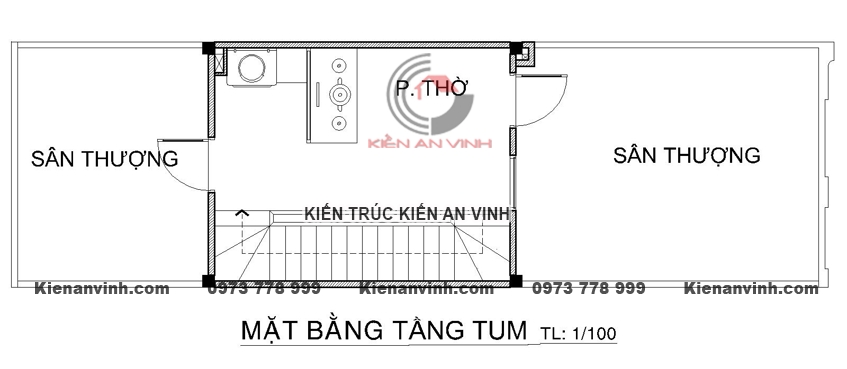 Tầng tum : Phòng thờ, sân thượng. mái.