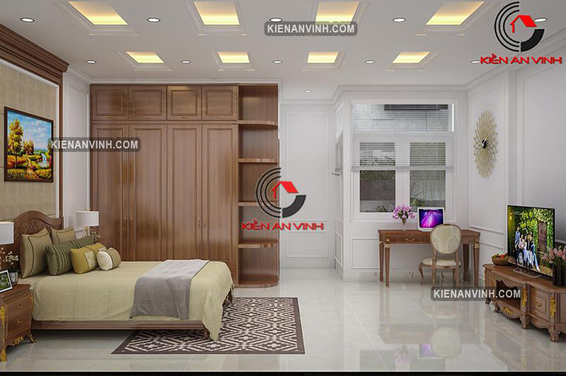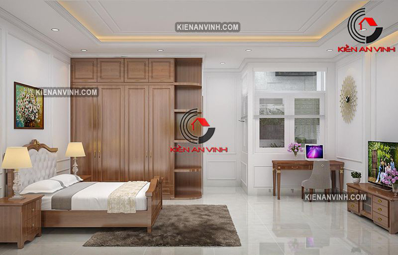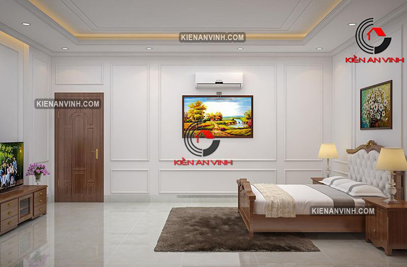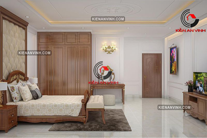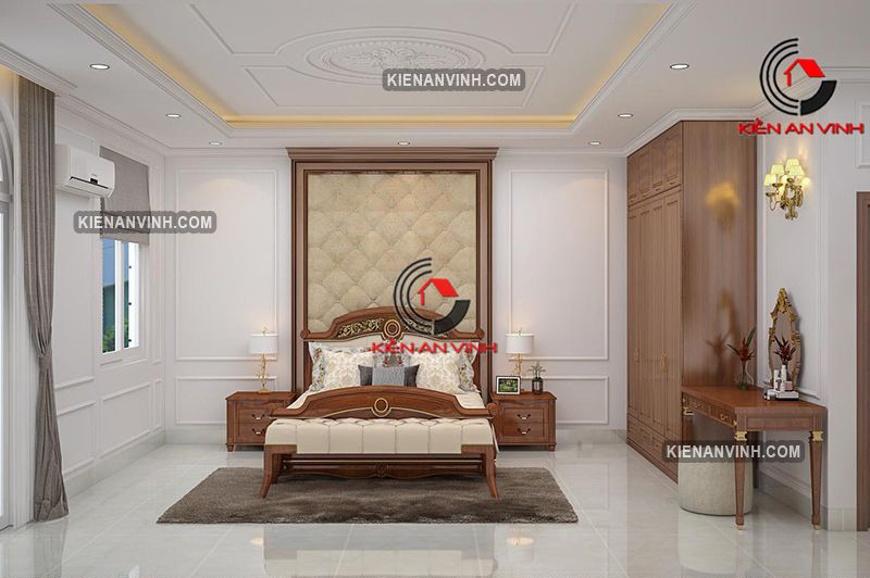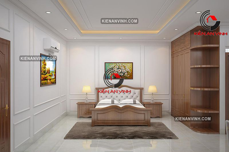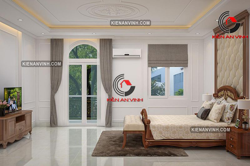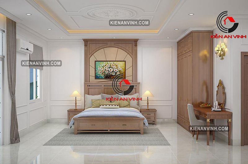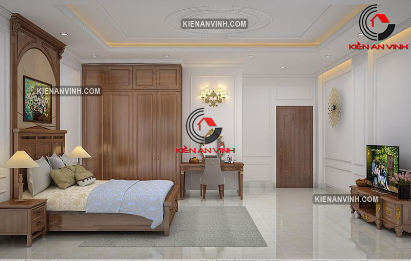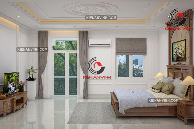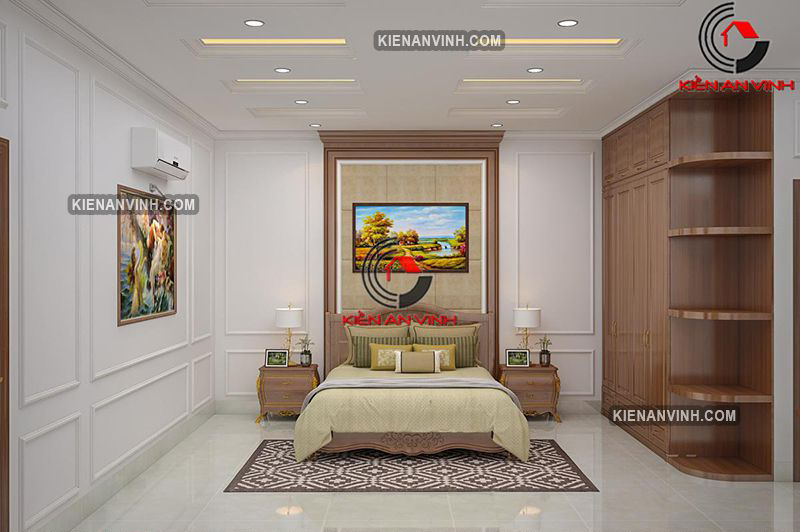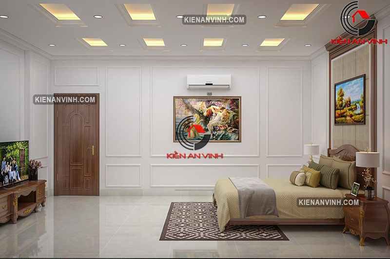 Phòng ngủ chính của gia chủ sẽ có diện tích rộng, với giường ngủ lớn, tủ quần áo âm tường. Khu vực thay đồ, và một phòng tắm riêng biệt. Tất cả được trang trí với màu sắc nhẹ nhàng và các chi tiết trang trí như rèm cửa, tranh ảnh, đèn chùm.