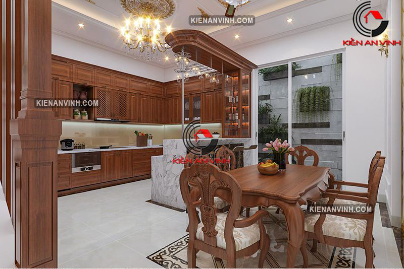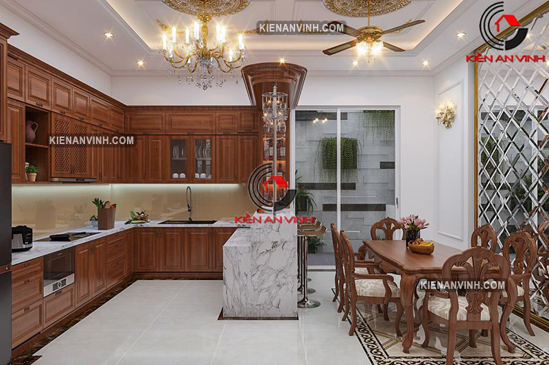 Đủ thu hút những ánh sáng tự nhiên vào trong ngôi nhà một cách tối ưu nhất. Nội thất phòng bếp sẽ sử dụng các vật liệu hiện đại gỗ tự nhiên cho tủ bếp. Với thiết kế mở thông thoáng, giúp không gian luôn sáng sủa và rộng rãi.
