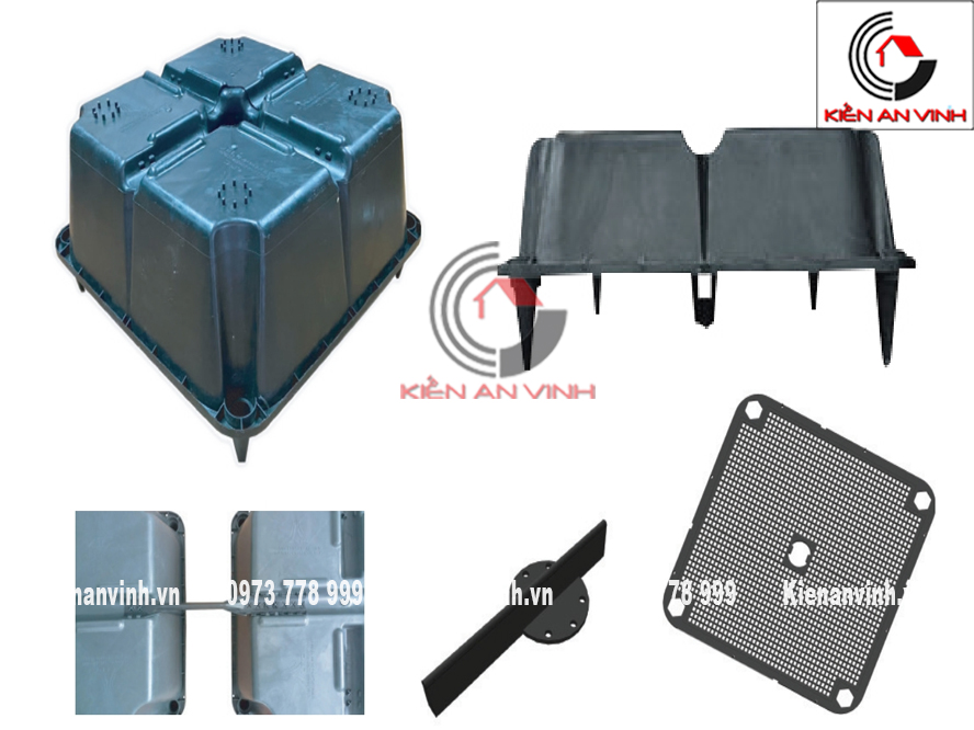 Cũng được hình thành từ hệ thống hộp nhựa PP. Ở đây là hộp nhựa rỗng với kích thước 52x52cm. Đan thành giữa hệ thép một hình vuông góc nhất định.