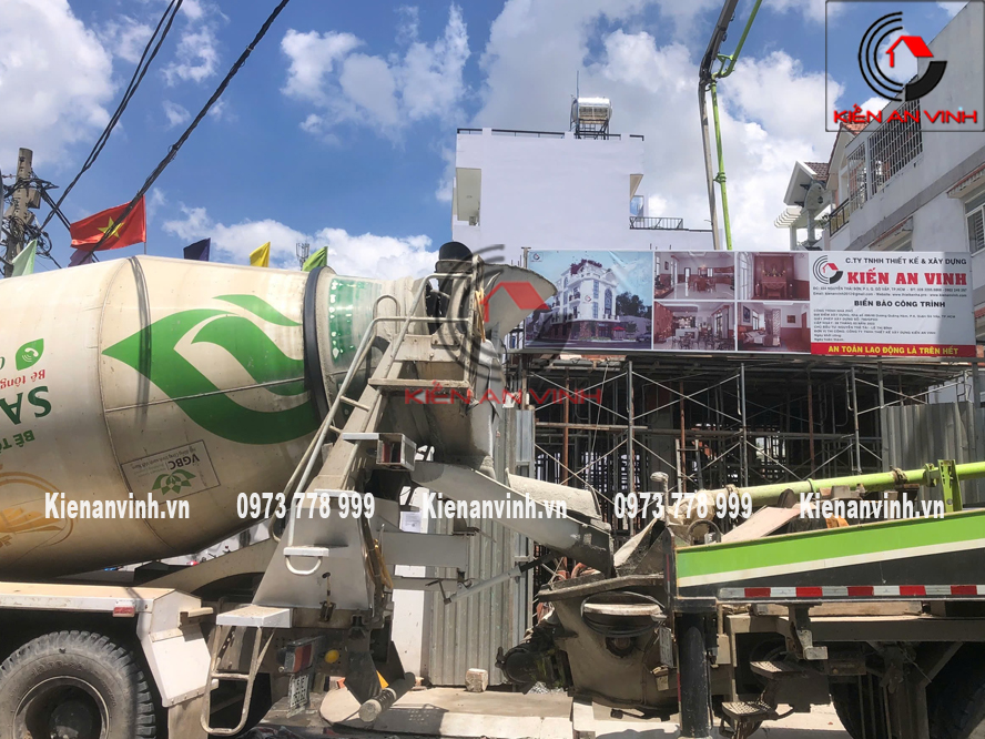 - Trộn và đổ bê tông sàn lớp 1 vượt qua chân côn