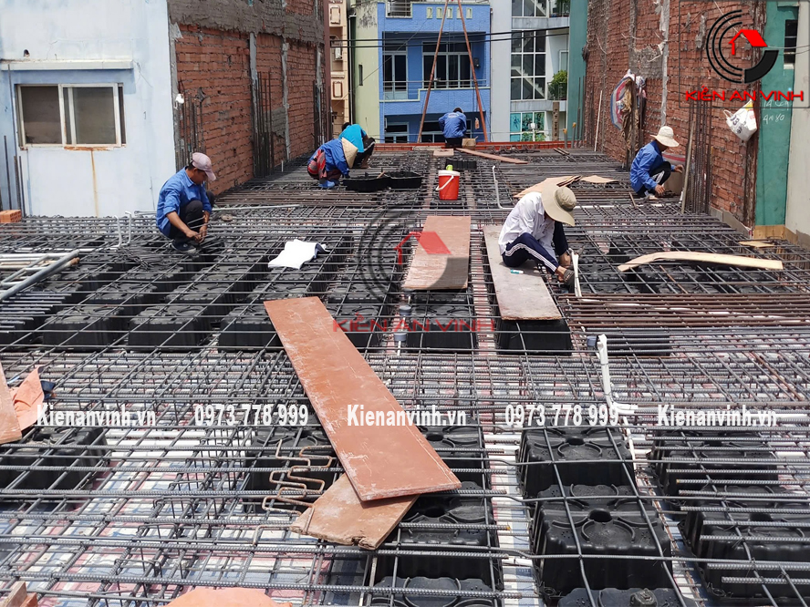 Đây là quy trình sàn Uboot chỉ khác với sàn phẳng đặc truyền thống ở khâu lắp đặt hộp. Ngoài ra thi công đơn giản hơn sàn dầm