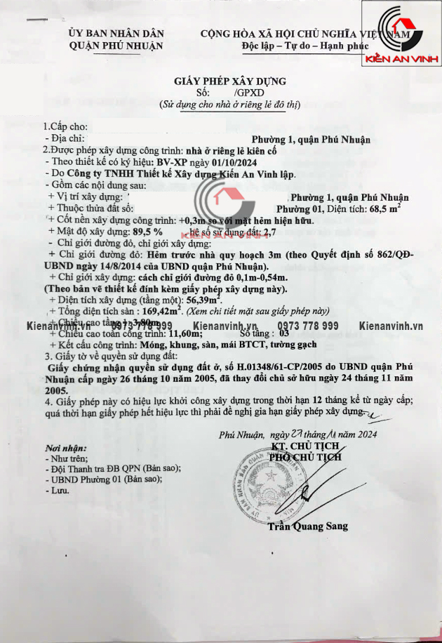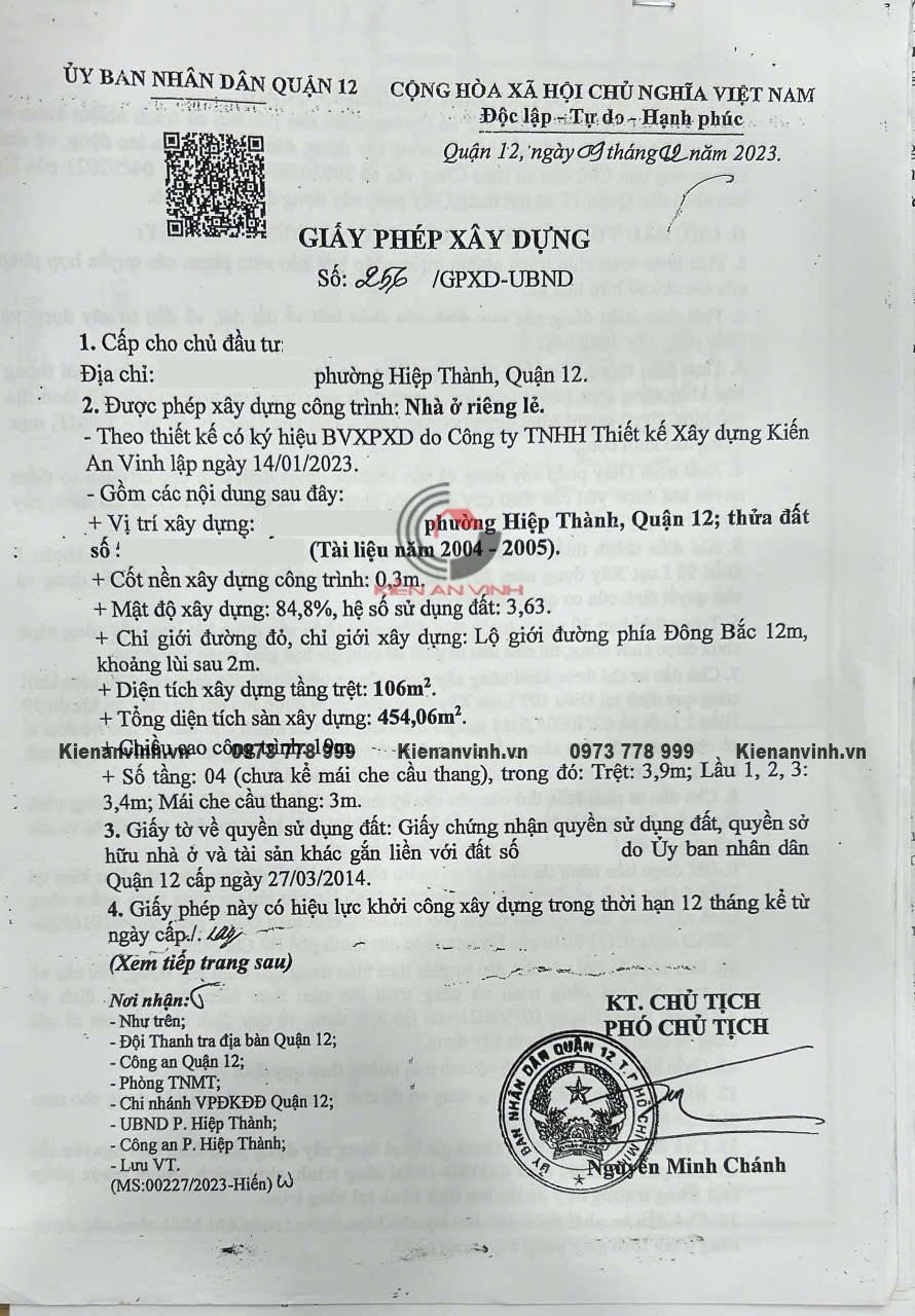 Dịch vụ xin giấy phép xây dựng quận Bình Tân tại Kiến An Vinh